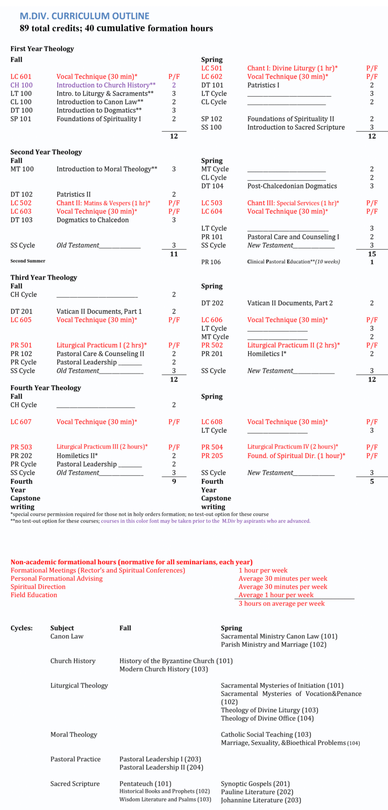 MDiv Curriculum Outline (89 Total Credits; 40 Cumulative Formation Hours)